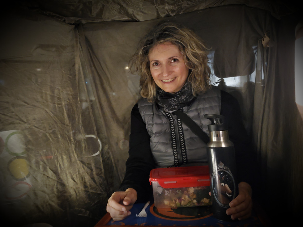We walked for about 9 hours. We managed to eat dinner past 10 p.m. in the Faraday cage of my car and got home late.